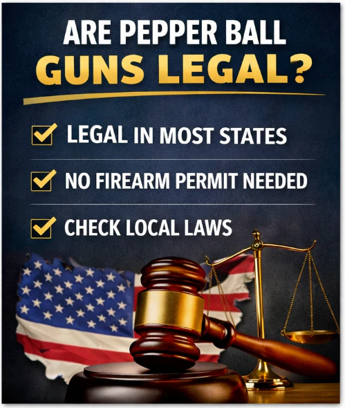 In most of the United States, pepper ball guns are legal to own and carry, though laws vary slightly by state and local jurisdiction.